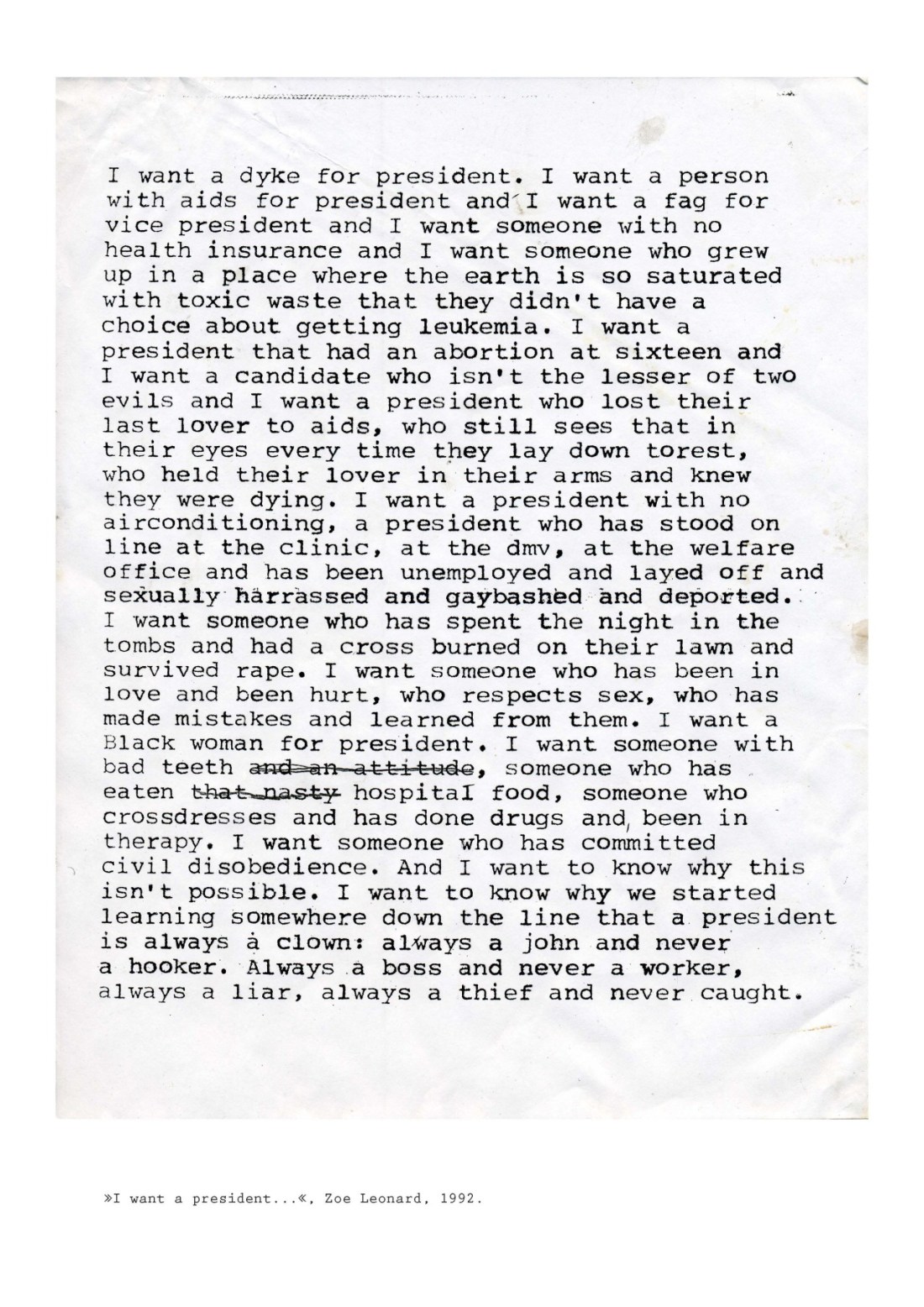 all things grow Uncategorized September 23, 2017December 11, 2018 1 Minute lesbianartandartists: Zoe Leonard, I Want a President… , 1992 Share this: Share on X (Opens in new window) X Share on Facebook (Opens in new window) Facebook Like Loading... Related Published by all things grow View all posts by all things grow Published September 23, 2017December 11, 2018