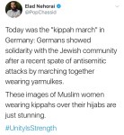 In solidarity it’s welcome by many Jews, and in a synagogue it may be expected (at least of men). Myself and all the other Jews I see reblogging this are very excited about Jewish/Muslim solidarity like this! (: